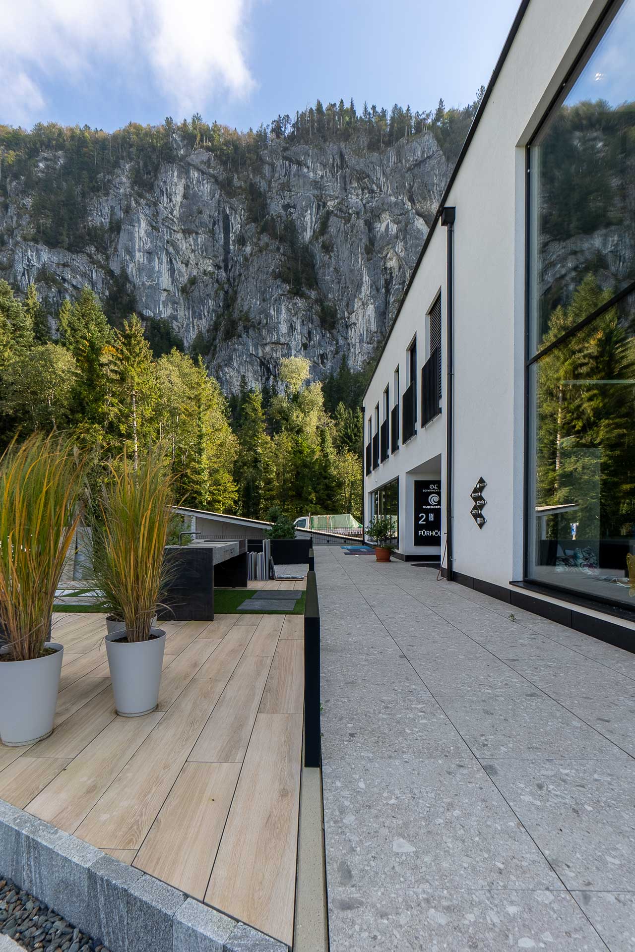 Ein Arbeitsplatz für Denker und Umsetzer. Ein Ort, der Arbeiten und Entspannen unmittelbar aneinander grenzen lässt. Vorne arbeiten, hinten entspannen. Ein Arbeitsplatz für Denker und Umsetzer. Ein Ort, der Arbeiten und Entspannen unmittelbar aneinander grenzen lässt. Vorne arbeiten, hinten entspannen. Während an der Vorderseite des Hauses die Hauptverkehrsader in die Untere Schranne vorbeiführt, beginnt an der Rückseite die Naturlandschaft des Kaisers. Idyllische Wanderwege. Oasen der Ruhe. Orte der Inspiration. Der Wald am Fuße des Zahmen Kaisers und das Kaisertal bieten für Pausen oder die Zeit nach der Arbeit zahlreiche Möglichkeiten zum Abschalten genauso wie zum Auspowern. Vom Spazieren gehen oder Laufen bis hin zum Klettern.