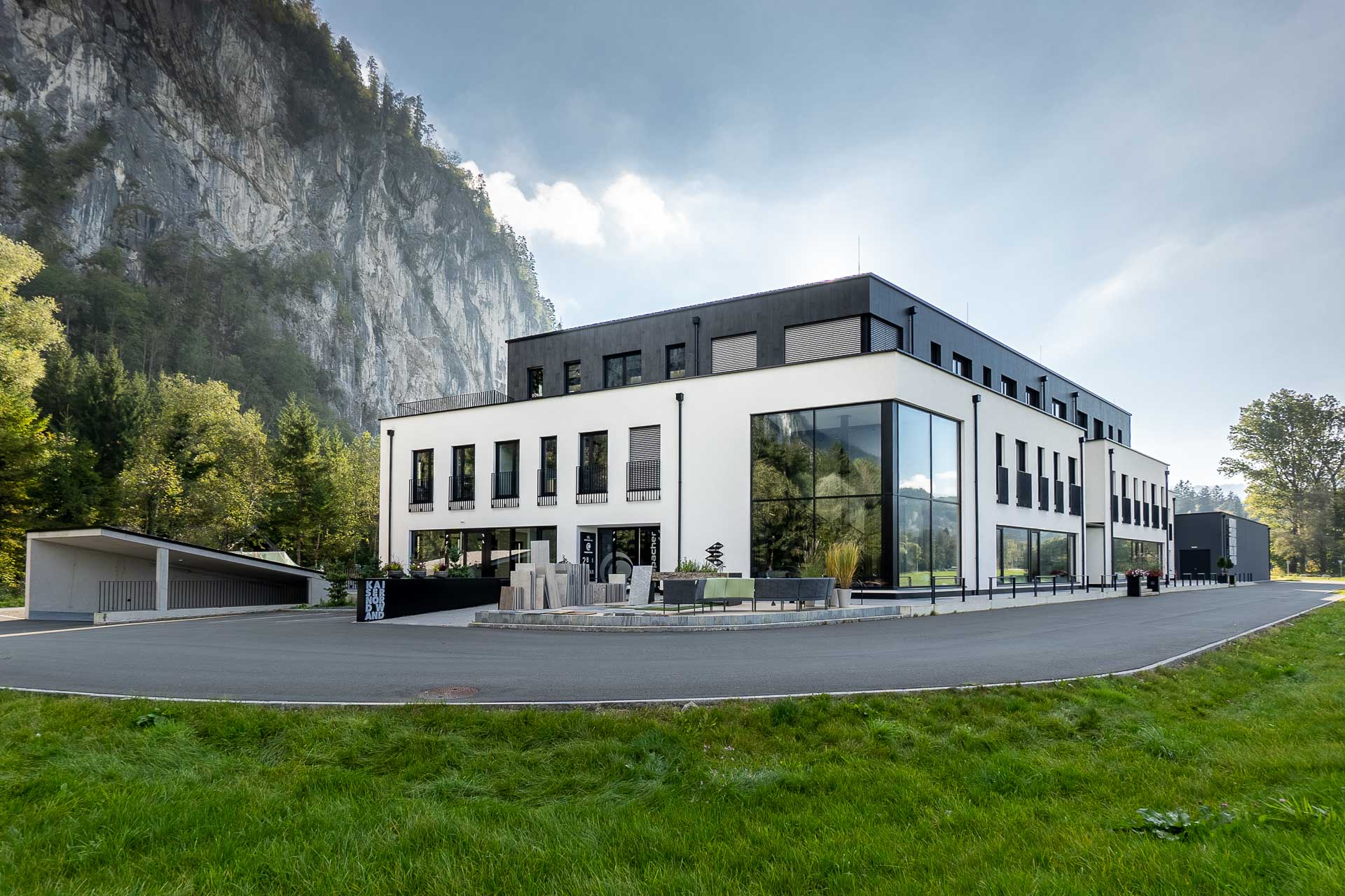 Bis Frühjahr 2019 entsteht mit der Kaiser Nordwand in unmittelbarer Nähe zum Kaiseraufstieg ein neuer Gebäudekomplex mit Büros-, Ausstellungsflächen und Lagerräumen. Klaus Suppacher, vom Kufsteiner Unternehmen Klaus Suppacher Fliesen, Öfen, Stein und Franz Hechenbichler, vom Kufsteiner Einrichtungsunternehmen Wohnatelier Lifestyle & Möbel sind die beiden Geschäftsführer der Kaiser Nordwand Immobilien GmbH, welche die neue Unternehmerheimat an der Peripherie Kufsteins errichtet und vermietet. „Geplant ist ein qualitativ hochwertiger Gebäudekomplex für Gewerbebetriebe und Dienstleister“, so Franz Hechenbichler.